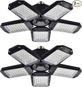 2 Pack LED Garage Lights, 120W Deformable LED Garage Ceiling Light with 5 Adjustable Panels, 12000LM E26 Shop Lamp for Basement, Barn, High Bay, Store (2 Pack)
